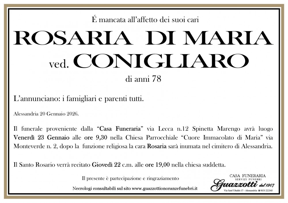 La cara Rosaria riposa nel cimitero di Alessandria
